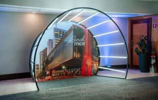 Design futurista e interação visual única. Ideal para criar efeitos dinâmicos em ambientes corporativos ou grandes eventos, o LED translúcido combina leveza e impacto visual, permitindo a passagem de luz e até interação com elementos do espaço.